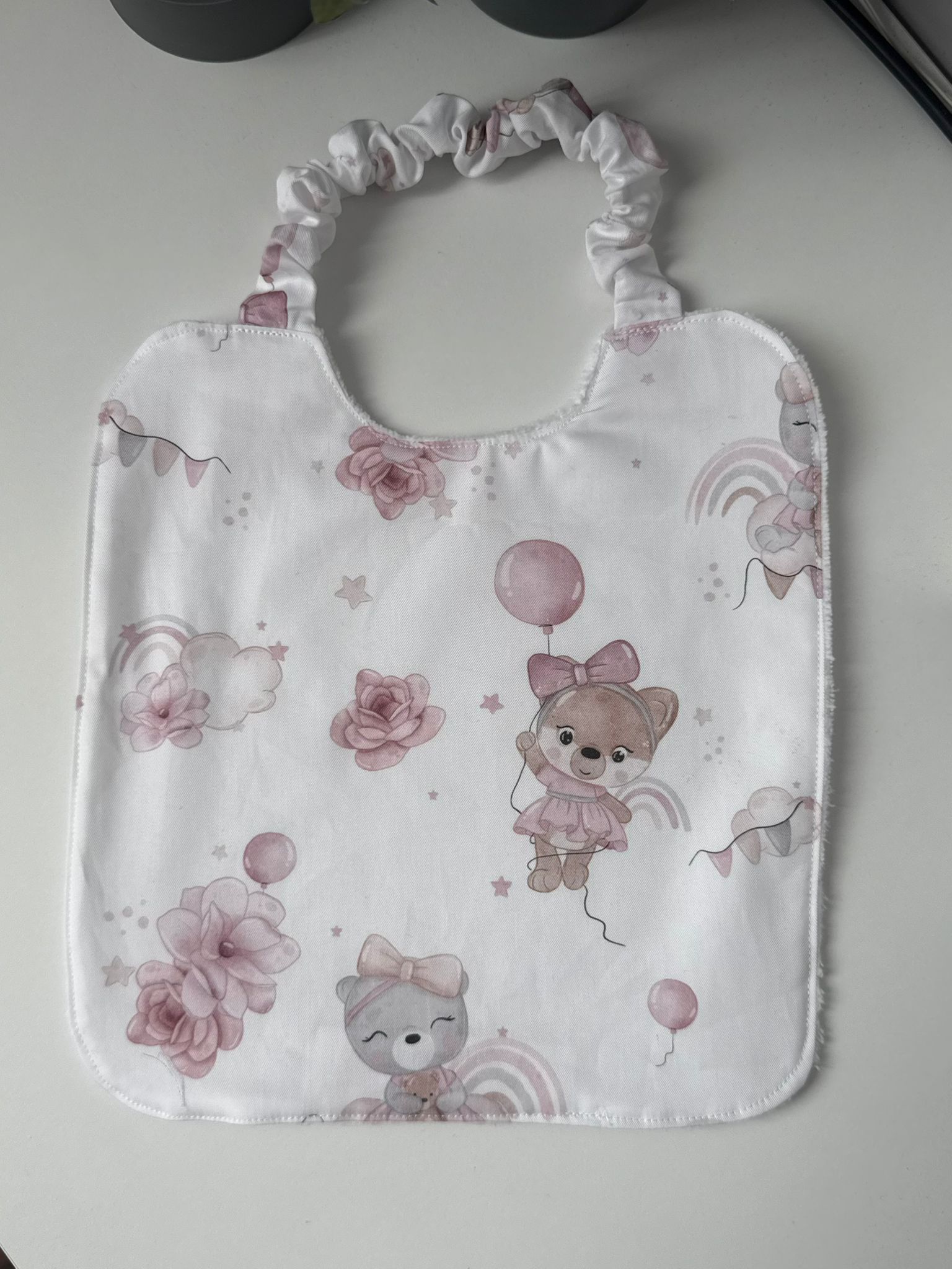 Collezione di bavaglini artigianali per neonati, realizzati in cotone con retro in spugna assorbente.