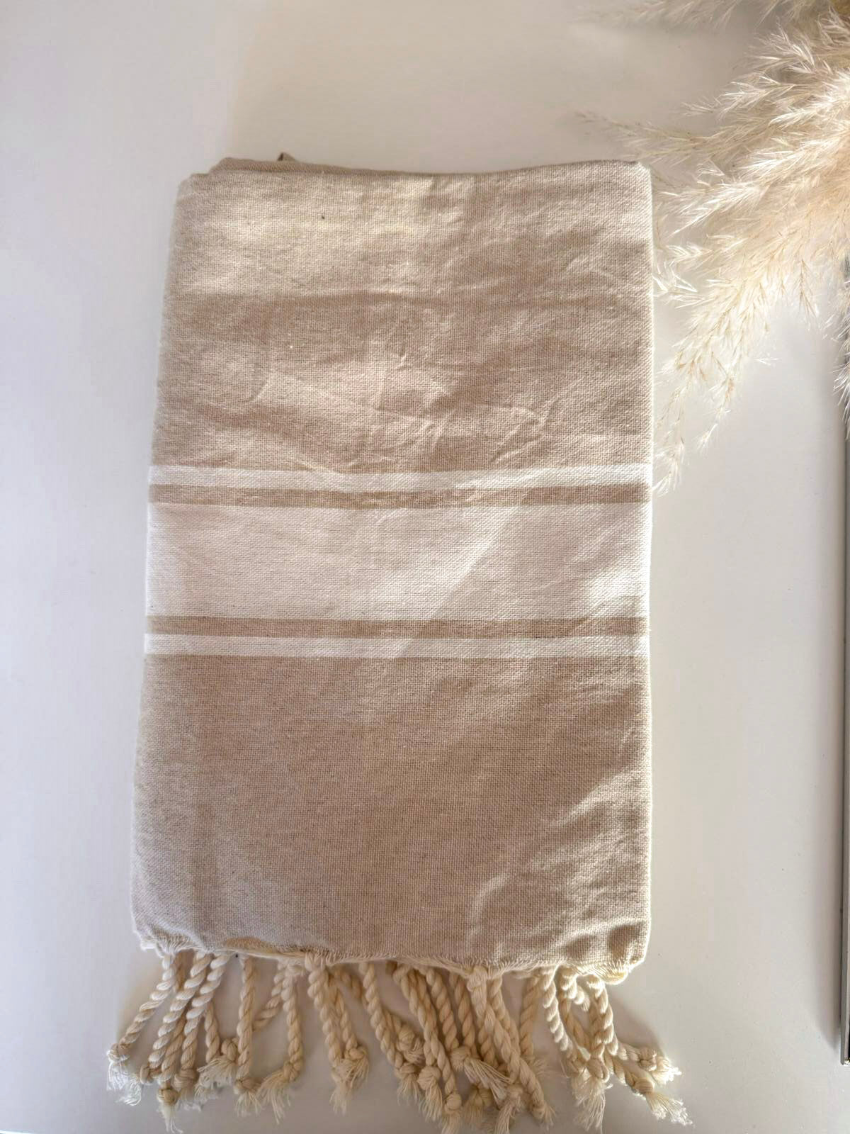 Ogni telo è ricamato a mano, in fouta di cotone di alta qualità, con frange intrecciate e dettagli che lo rendono speciale.