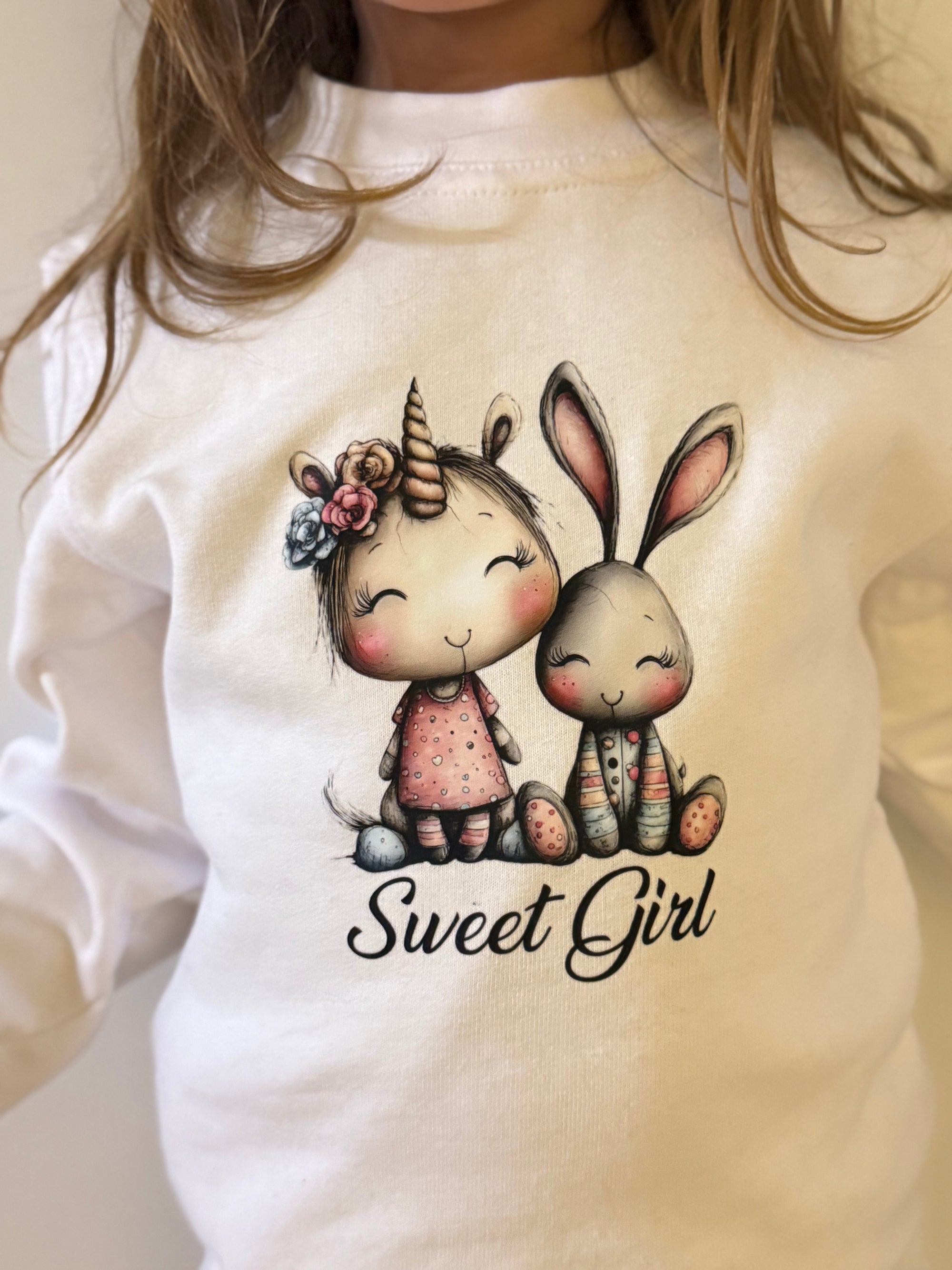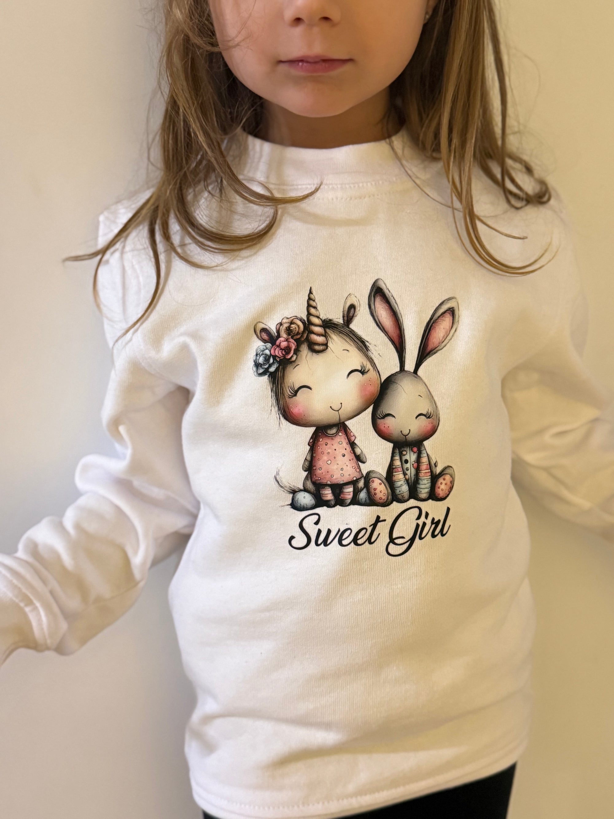 Felpa bambina Sweet Girl con unicorno – felpa bianca personalizzata