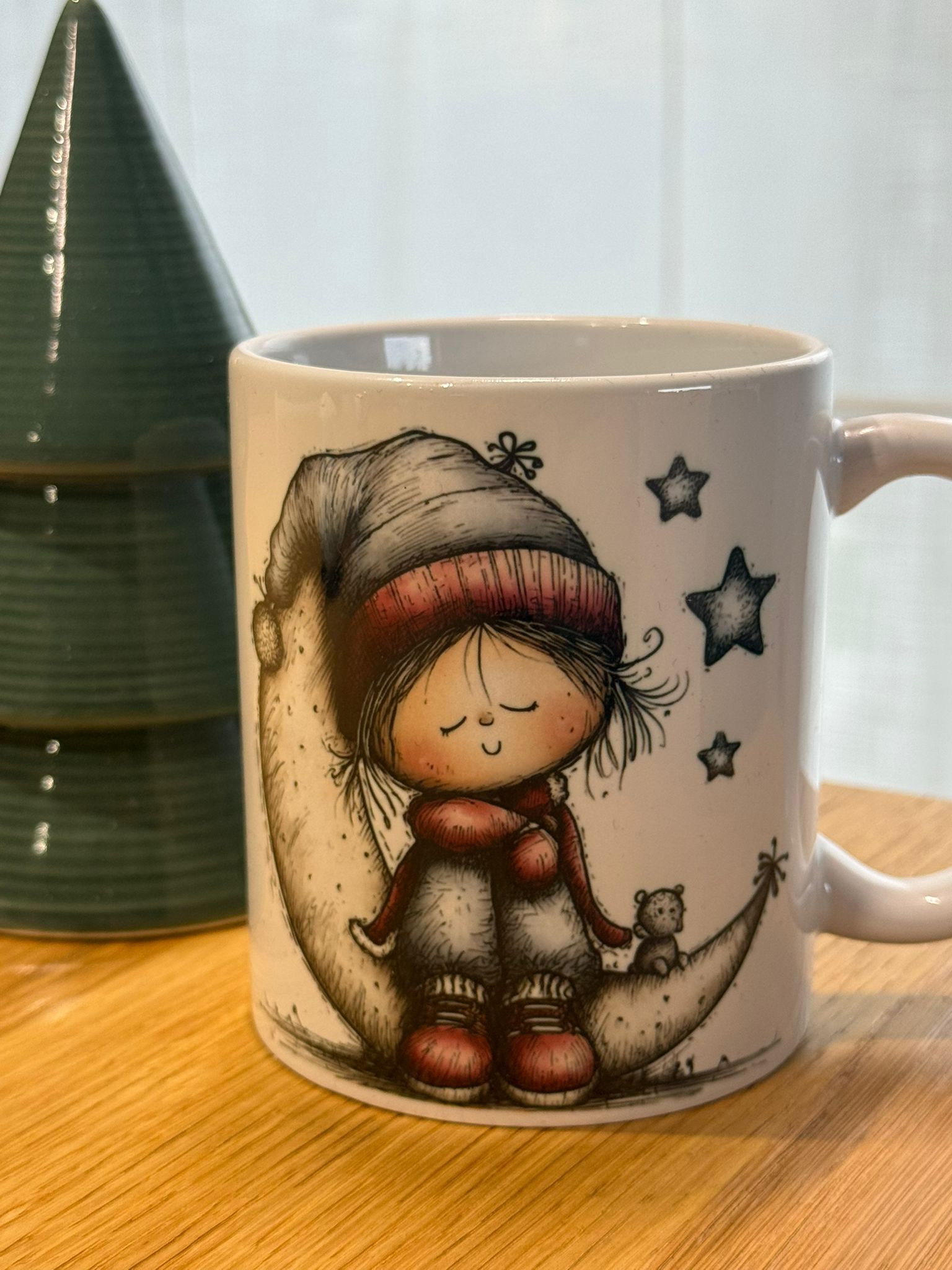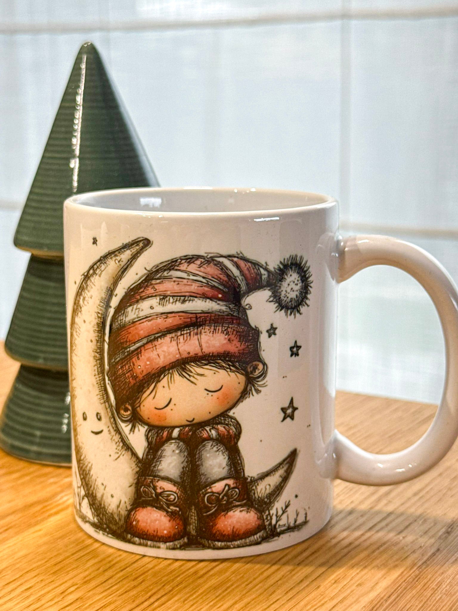Ogni tazza è decorata con illustrazioni delicate e dettagliate, perfette per chi ama atmosfere calde, invernali e romantiche.